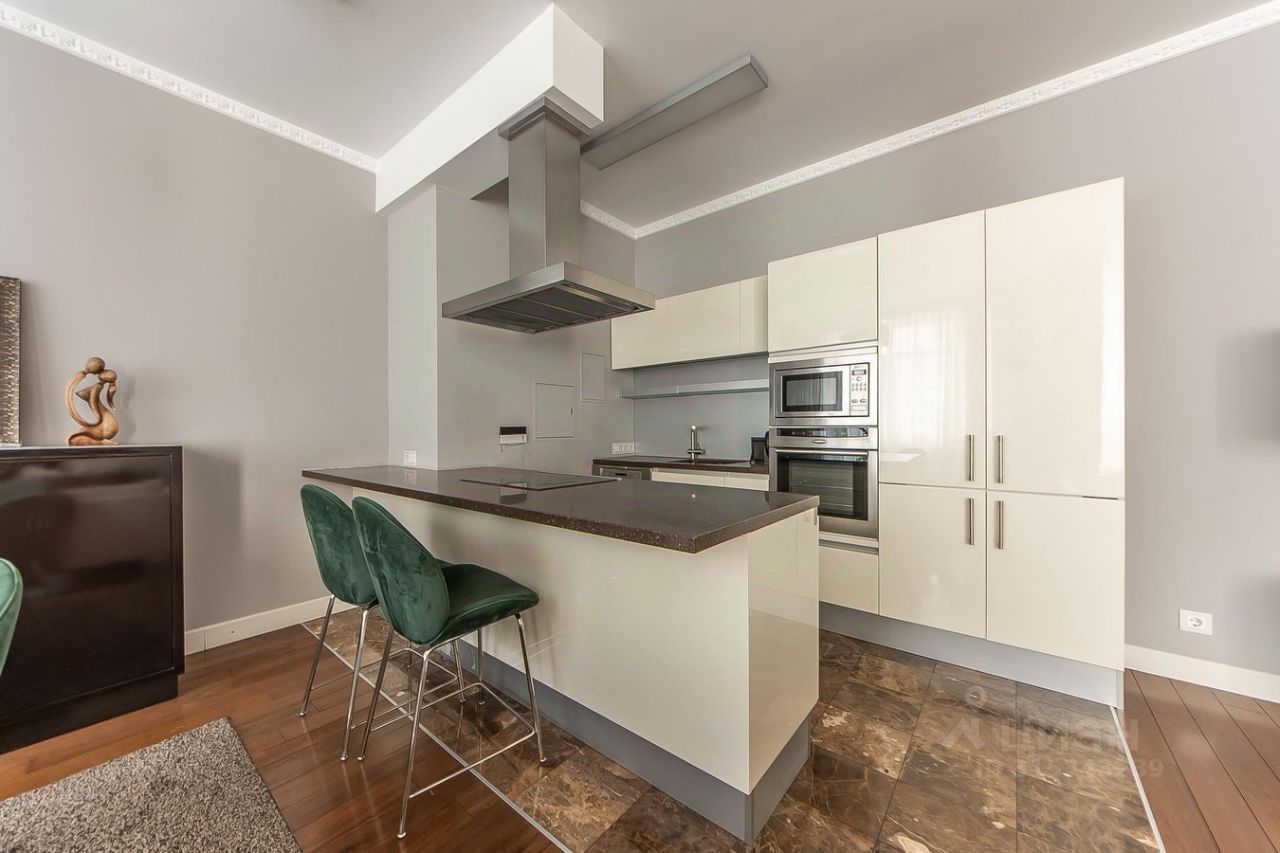 Планировка включает в себя: кухня-гостиная, 2 спальни, ванная комната с ванной и душевой, гостевой санузел, 2 гардеробные, постирочная с сушильной машиной, холл. Квартира полностью укомплектована современной мебелью, кухня оснащена встроенной техникой включая посудомоечную машину и духовой шкаф. Установлена система кондиционирования, нагреватель воды. Окна выходят в переулок. Машиноместо в подземном паркинге входит в стоимость аренды.
