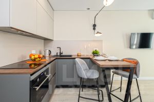 -кухонная мебель : комплект с техникой + барный стол+3 удобных мягких стула ;