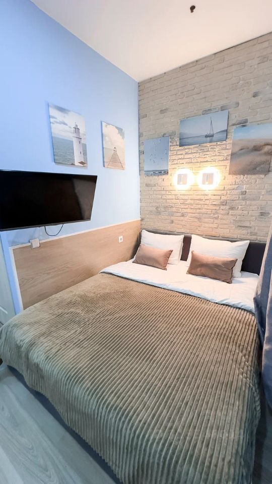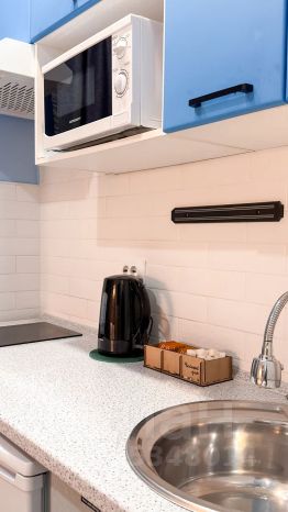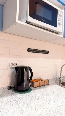 Студия полностью оборудована для комфортного проживания: телевизор, бесплатный Wi-Fi, стиральная машина, утюг, фен, варочная панель, чайник и микроволновка. Есть штопор и бокалы. Регулярная уборка профессиональной химией и дезинфекция от насекомых, а также смена белья на чистое и свежее проводятся перед каждым заездом.