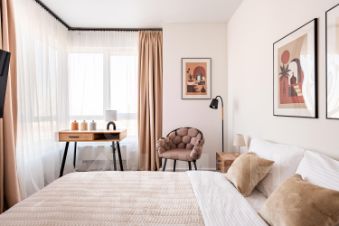 - Удобства: 2 просторные кровати (одна из них King size), удобные матрасы и шторы блэк-аут - выспитесь ;