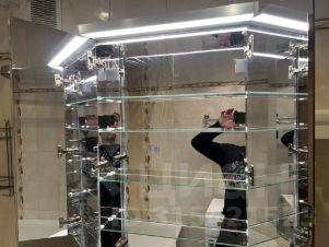Санузел раздельный, в ванне - стиральная машина, зеркальный шкаф с полками для ванных принадлежностей.