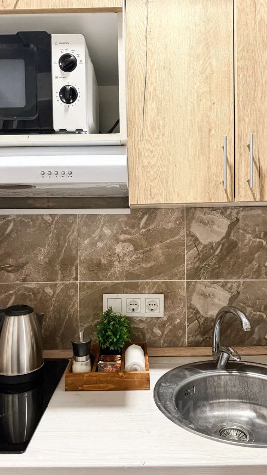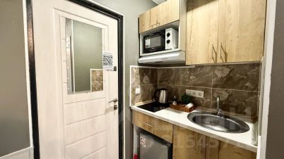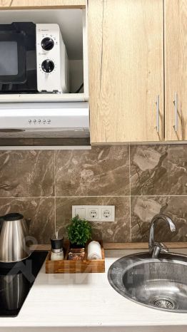 Студия полностью оборудована для комфортного проживания: телевизор, бесплатный Wi-Fi, стиральная машина, утюг, фен, варочная панель, чайник и микроволновка. Есть штопор и бокалы. Регулярная уборка профессиональной химией и дезинфекция от насекомых, а также смена белья на чистое и свежее проводятся перед каждым заездом.