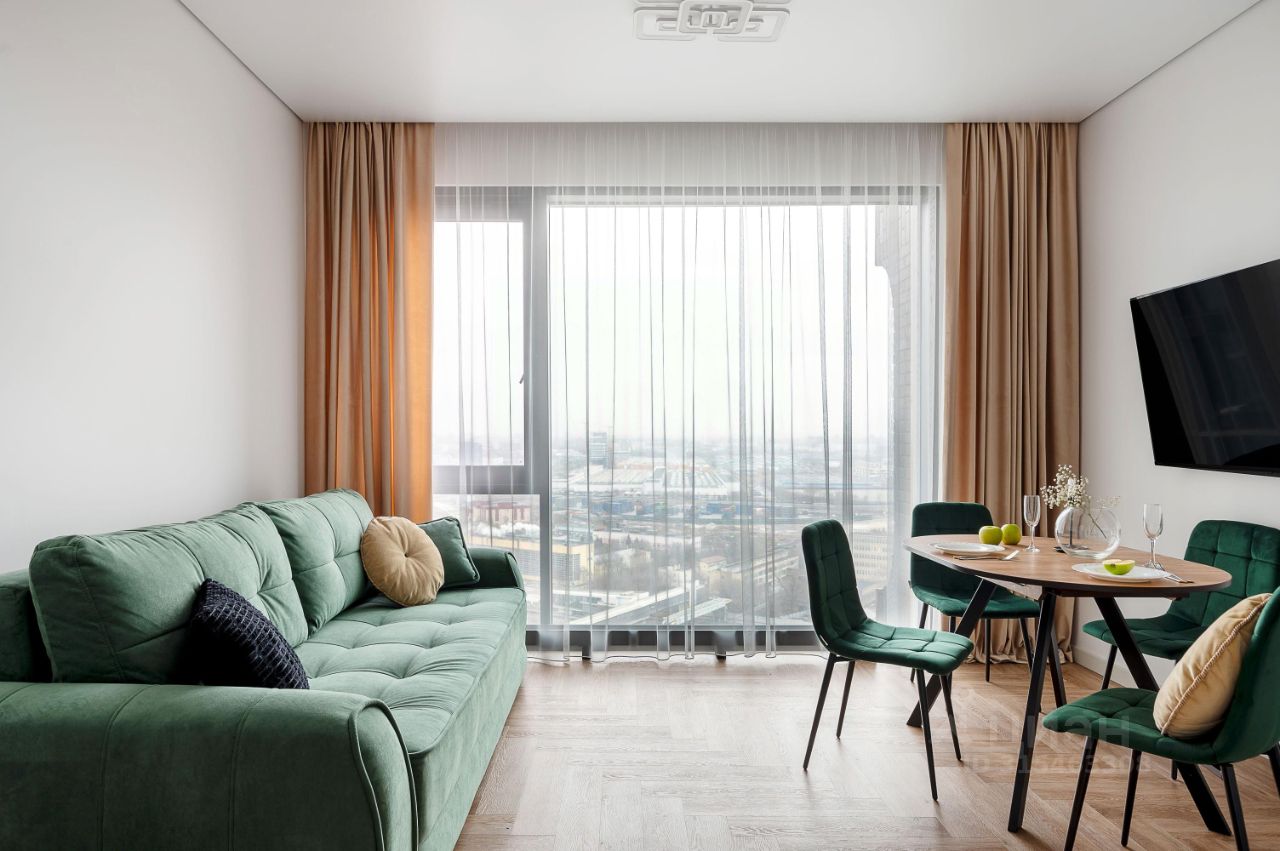 Эта квартира воплощение уюта и современного дизайна: просторная, светлая и наполненная натуральным светом благодаря панорамным окнам. Интерьер, оформленный в благородных кремовых и глубоких тёмно-зелёных тонах, дарит ощущение спокойствия и гармонии, а продуманные детали создают атмосферу эксклюзивного комфорта.