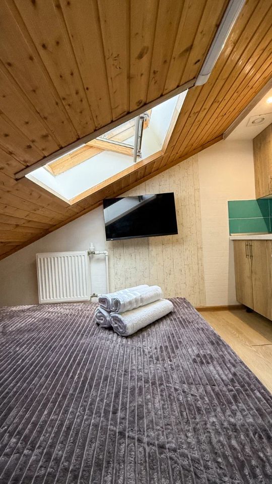 Студия полностью оборудована для комфортного проживания: телевизор, бесплатный Wi-Fi, стиральная машина, утюг, фен, варочная панель, чайник и микроволновка. Есть штопор и бокалы. Регулярная уборка профессиональной химией и дезинфекция от насекомых, а также смена белья на чистое и свежее проводятся перед каждым заездом.