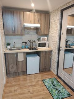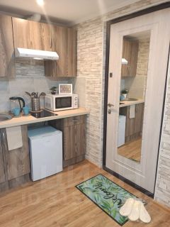 Студия полностью оборудована для комфортного проживания: телевизор, бесплатный Wi-Fi, стиральная машина, утюг, фен, варочная панель, чайник и микроволновка. Есть штопор и бокалы. Регулярная уборка профессиональной химией и дезинфекция от насекомых, а также смена белья на чистое и свежее проводятся перед каждым заездом.