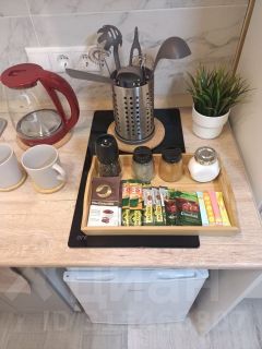 Студия полностью оборудована для комфортного проживания: телевизор, бесплатный Wi-Fi, стиральная машина, утюг, фен, варочная панель, чайник и микроволновка. Есть штопор и бокалы. Регулярная уборка профессиональной химией и дезинфекция от насекомых, а также смена белья на чистое и свежее проводятся перед каждым заездом.