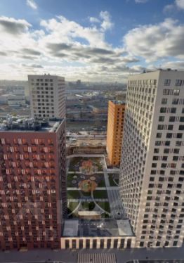 Закрытый двор с ландшафтным дизайном с зоной для тренировок и коворкинга.
