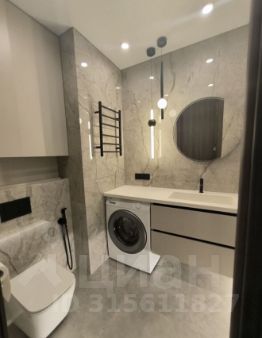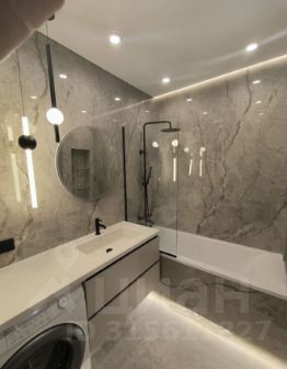 Санузел совмещенный, унитаз с инсталляцией, полноценная ванна (160 см), шкафчики для хранения, раковина интегрированная, ванная оснащена системой от протечки воды Нептун.