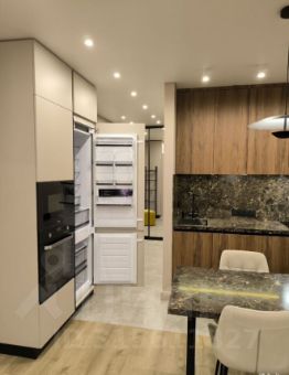 В квартире мебель и техника (холодильник с морозильной камерой, духовой шкаф, микроволновая печь, посудомойка, индукционная 2-х конфорочная плита, стиральная машина - вся техника фирмы Haier).