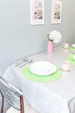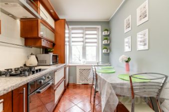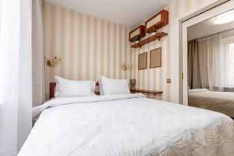 В квартире для удобного проживания имеется современная мебель,двух спальная кровать,диван, бытовая техника, Спутниковое ТВ, гладильная доска, сушилка, оборудованная кухня, полный комплект посуды для приготовления и приёма еды.