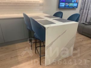 Квартира с дизайнерским ремонтом в стиле Сканди-Лофт, полностью укомплектована современнейшей бытовой техникой и готова к проживанию (стиральная и сушильная машины Bosch, встроенные: холодильник, микроволновая печь, духовка, посудомоечная машина). Кухня фабрики Мария с профилем Gola и столешницей с барной стойкой из кварцевого агломерата. Большой угловой диван со спальным местом.