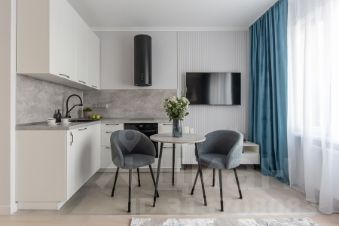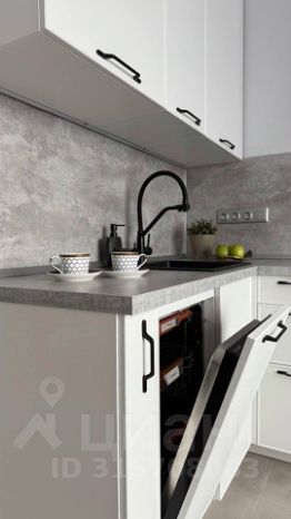 — Кухонный гарнитур с техникой: холодильник, посудомойка, плита, стиральная машина