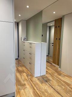 Прихожая со множеством шкафов и мест под хранение.