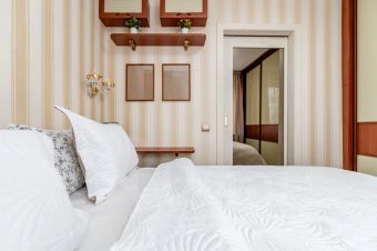 В квартире для удобного проживания имеется современная мебель, двуспальная кровать, диван, бытовая техника, спутниковое ТВ, гладильная доска, сушилка, оборудованная кухня, полный комплект посуды для приготовления и приёма еды.