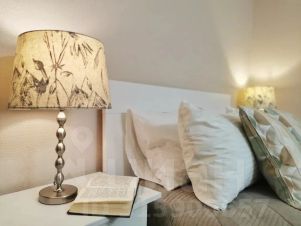 Двуспальная кровать с ортопедическим матрасом и белоснежным постельным бельём.