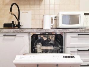 Всё необходимое: посуда, кастрюли, сковородки, чайник, тостер.