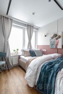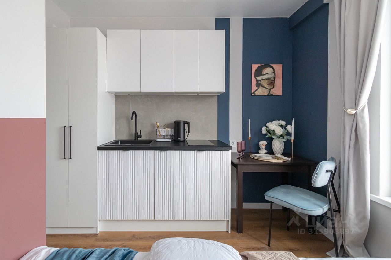 Стильная уютная студия в ЖК Мята. Большие окна. Качественная дорогая мебель и техника. Интерьер продуман до мелочей. Апартаменты, откуда не хочется уезжать.