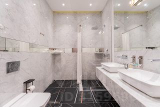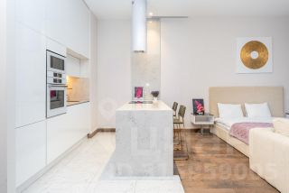 Белоснежный интерьер с мраморными подогревающими полами и дизайнерским белым диваном с полноценным рабочим место. Панорамные окна открывают вид на небоскребы делового центра, на реку и на изумительно красивую Москву. Стильная кухня-гостиная в едином пространстве, что придает отдельного уюта.