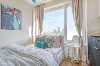 Большие окна. Качественная дорогая мебель и техника. Интерьер продуман до мелочей. Апартаменты, откуда не хочется уезжать.