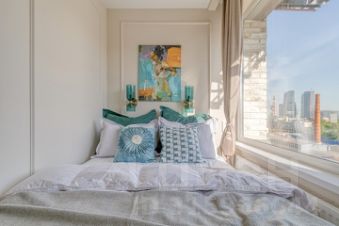 Большие окна. Качественная дорогая мебель и техника. Интерьер продуман до мелочей. Апартаменты, откуда не хочется уезжать.