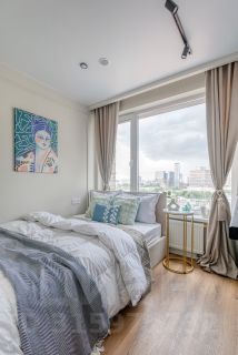 Большие окна. Качественная дорогая мебель и техника. Интерьер продуман до мелочей. Апартаменты, откуда не хочется уезжать.