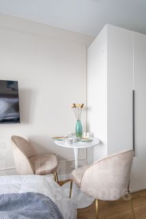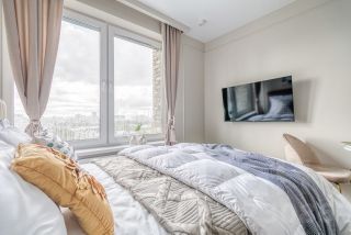 Большие окна. Качественная дорогая мебель и техника. Интерьер продуман до мелочей. Апартаменты, откуда не хочется уезжать.
