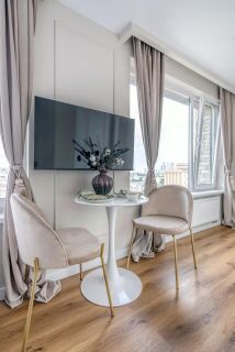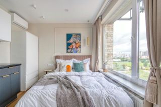 Стильная уютная студия в ЖК Мята. Большие окна. Качественная дорогая мебель и техника. Интерьер продуман до мелочей. Апартаменты, откуда не хочется уезжать.