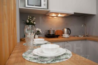 Студия расположена в ЖК Тополя, прекрасный вариант для гостей, которые хотят комфорта.