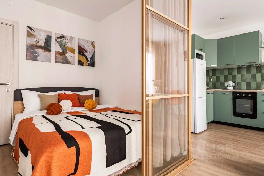 В распоряжении гостей однокомнатная квартира, в которой могут расположиться до 3 гостей. В квартире: кровать, раскладной диван 120 см в ширину, шторы блэкаут, Wi-Fi, телевизор со Смарт-ТВ, холодильник, плита, фен, утюг, стиральная машина, духовка, СВЧ, посудомоечная машина, кондиционер, махровые полотенца, постельное бельё, средства личной гигиены, комплект посуды и столовых приборов, а также французские двери.