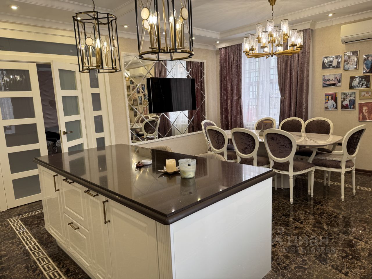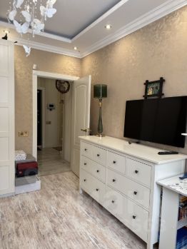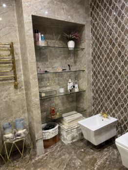 В квартире выполнен дизайнерский ремонт, два санузла (основной с ванной, гостевой с душевой кабиной), лоджия оборудована дополнительным морозильником, много систем хранения, дополнение - гардеробная 11 кв м, установлена немецкая и итальянская техника и мебель, кондиционирование, теплые полы.