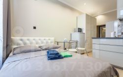 ОПИСАНИЕ: апартаменты с новым дизайнерским евро-ремонтом со всей необходимой мебелью. Размещение до 2 человек. Спальные места: двуспальная кровать. Встроенная кухня, с/у в кафеле, импортная сантехника, стеклопакеты.