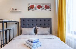 ОПИСАНИЕ: апартаменты с новым дизайнерским евро-ремонтом со всей необходимой мебелью. Размещение до 3 человек. Спальные места: двуспальная кровать и односпальный диван. Встроенная кухня, с/у в кафеле, импортная сантехника, стеклопакеты.