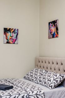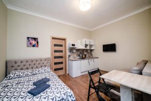 Современная мебель, двуспальная кровать, бытовая техника, скоростной WI-FI, спутниковое TV, гладильная доска, сушилка для белья, фен, оборудованная кухня, полный комплект посуды для приготовления и приёма еды
