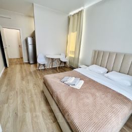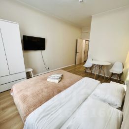 Для комфортного проживания имеется два полноценных спальных места и одно дополнительное место. Вся необходимая бытовая техника: Smart TV телевизор, холодильник, микроволновая печь, варочная панель, электрический чайник, посуда, утюг, гладильная доска, фен, стиральная машина, WI-FI, спальное место с ортопедическим матрасом, шторы blackout, комплект спального белья, комплект полотенец, тапочки. Также для удобства гостей имеется чай, кофе, сахар, соль, перец.