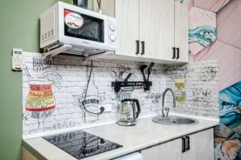 Современная мебель, двуспальная кровать, бытовая техника, скоростной WI-FI, спутниковое ТV, гладильная доска, сушилка для белья, фен, оборудованная кухня, полный комплект посуды для приготовления и приёма еды