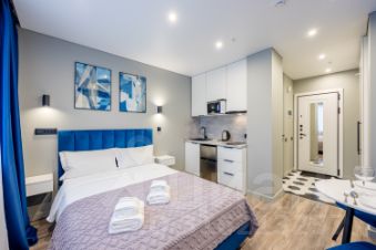 ОПИСАНИЕ: апартаменты с новым дизайнерским евро-ремонтом со всей необходимой мебелью. Размещение до 2-ух человек. Спальные места: двуспальная кровать (140 на 200), встроенная кухня, с/у в кафеле, импортная сантехника, стеклопакеты.