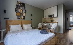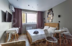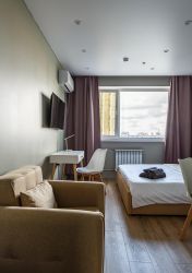 ОПИСАНИЕ: апартаменты с новым дизайнерским евро-ремонтом со всей необходимой мебелью. Размещение до 3-ёх человек. Спальные места: двуспальная кровать (160 на 200) + кресло-кровать, встроенная кухня, с/у в кафеле, импортная сантехника, стеклопакеты.