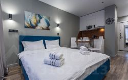 УДОБСТВА В АПАРТАМЕНТАХ: кондиционер, wi-fi (100мб/сек), цифровое ТВ (130 каналов), плазменный ТВ, СВЧ, чайник, вся необходимая посуда для приготовления и приёма пищи, качественные постельное белье и полотенца, стиральная машина, утюг, гладильная доска, фен и прочие бытовые мелочи (одноразовые тапочки и индивидуальный косметический набор)