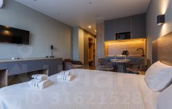 УДОБСТВА В АПАРТАМЕНТАХ: кондиционер, wi-fi (100мб/сек), цифровое ТВ (130 каналов), плазменный ТВ, СВЧ, чайник, вся необходимая посуда для приготовления и приёма пищи, качественные постельное белье и полотенца, стиральная машина, утюг, гладильная доска, фен и прочие бытовые мелочи (одноразовые тапочки и индивидуальный косметический набор)
