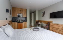 Aпapтaмeнты нaходятcя нa югo-западе Москвы в апарт-отеле Салют 4 звезды. На территории отеля функционирует фитнес-клуб, бассейн и SРА-салон красоты, охрана 24/7, пропускная система, видеонаблюдение, скоростные лифты. Время заселения с 15:00, время выезда до 12:00 ЗАСЕЛЕНИЕ 24/7 По согласованию: ранний заезд, поздний выезд, отчетные документы. КУРЕНИЕ в АПАРТАМЕНТАХ ЗАПРЕЩЕНО. Мероприятия и размещение с домашними животными в квартире строго запрещены!! При заезде необходимо внести страховой депозит 3000₽ (возвращается при выезде при соблюдении правил проживания в квартире). ОПИСАНИЕ: апартаменты с новым дизайнерским евро-ремонтом со всей необходимой мебелью. Размещение до 2-ух человек. Спальные места: двуспальная кровать (160 на 200), встроенная кухня, с/у в кафеле, импортная сантехника, стеклопакеты. Для наших гостей мы предлагаем заказать ЗАВТРАК из 3-ёх блюд с доставкой в номер со скидкой 50%!!! Охраняемая ПАРКОВКА под шлагбаумом 500р/сутки + бесплатная парковка в 2-ух минутах. РЯДОМ: РДКБ , Перинатальный центр им. Кулакова на Опарина 4, МГУ, МГИМО, РАНХиГС, Академия ФСБ, РУДН, Городская клиническая больница 31, Родильный дом 4, Университет нефти и газа им. Губкина, Цирк на Вернадского, Аэропорт Внуково, Воробьевы горы и спорткомплекс Лужники, крупные торговые центры, магазины, рестораны, банки, парк. Удобная транспортная доступность. УДОБСТВА В АПАРТАМЕНТАХ: кондиционер, wi-fi (100мб/сек), цифровое ТВ (130 каналов), плазменный ТВ, СВЧ, чайник, вся необходимая посуда для приготовления и приёма пищи, качественные постельное белье и полотенца, стиральная машина, утюг, гладильная доска, фен и прочие бытовые мелочи (одноразовые тапочки и индивидуальный косметический набор) ОПЛАТА: Наличный расчет (при заезде), безнал для юридических лиц, оплата по QR коду У нас много положительных отзывов и высокие рейтинги. С нами комфортно и надежно!