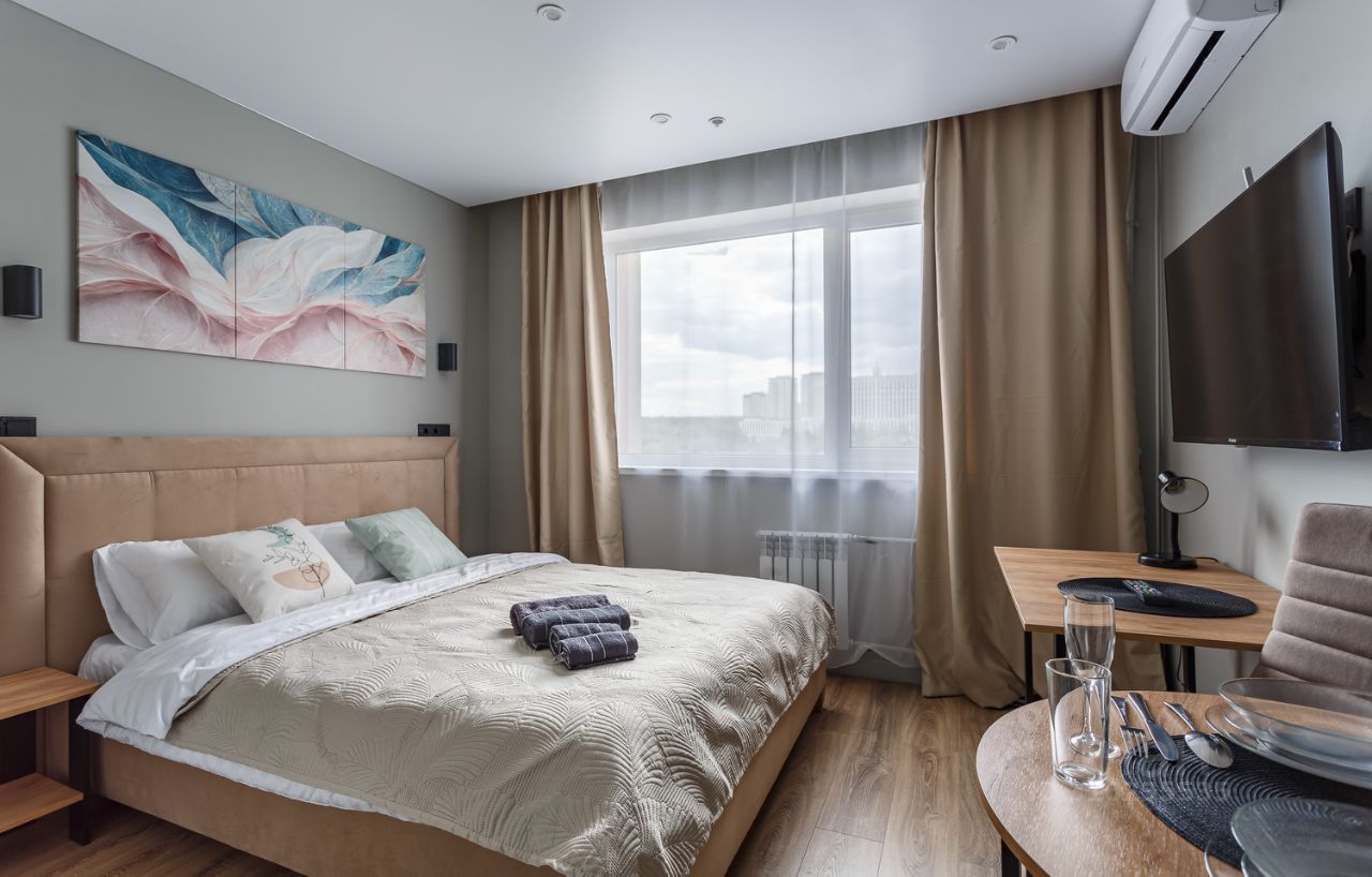 Aпapтaмeнты нaходятcя нa югo-западе Москвы в апарт-отеле Салют 4 звезды.