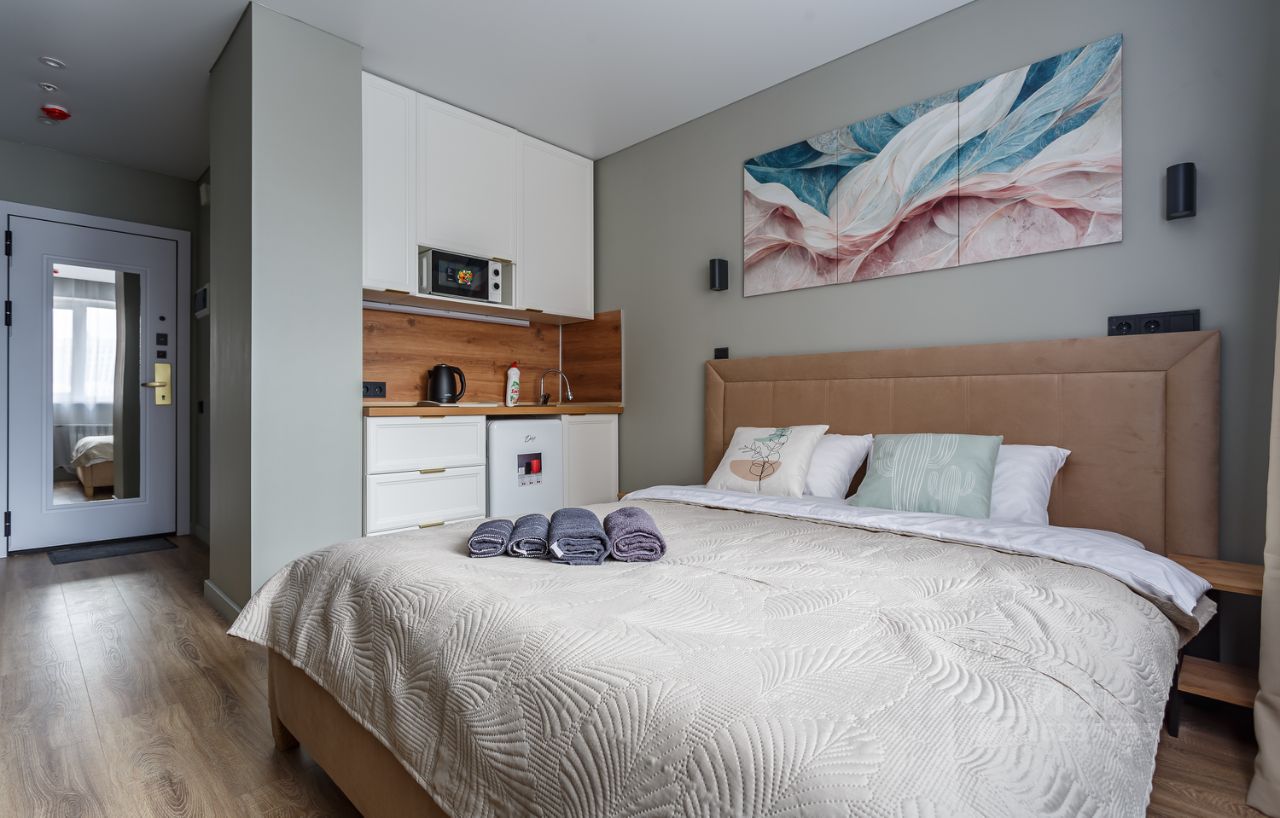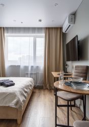 УДОБСТВА В АПАРТАМЕНТАХ: кондиционер, wi-fi (100мб/сек), цифровое ТВ (130 каналов), плазменный ТВ, СВЧ, чайник, вся необходимая посуда для приготовления и приёма пищи, качественные постельное белье и полотенца, стиральная машина, утюг, гладильная доска, фен и прочие бытовые мелочи (одноразовые тапочки и индивидуальный косметический набор)