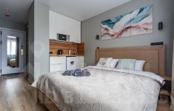 ОПИСАНИЕ: апартаменты с новым дизайнерским евро-ремонтом со всей необходимой мебелью. Размещение до 2-ух человек. Спальные места: двуспальная кровать (160 на 200), встроенная кухня, с/у в кафеле, импортная сантехника, стеклопакеты.