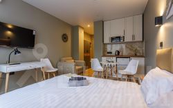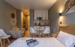 УДОБСТВА В АПАРТАМЕНТАХ: кондиционер, wi-fi (100мб/сек), цифровое ТВ (130 каналов), плазменный ТВ, СВЧ, чайник, вся необходимая посуда для приготовления и приёма пищи, качественные постельное белье и полотенца, стиральная машина, утюг, гладильная доска, фен и прочие бытовые мелочи (одноразовые тапочки и индивидуальный косметический набор)
