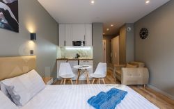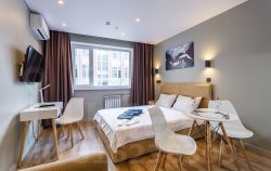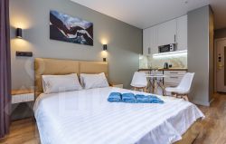 УДОБСТВА В АПАРТАМЕНТАХ: кондиционер, wi-fi (100мб/сек), цифровое ТВ (130 каналов), плазменный ТВ, СВЧ, чайник, вся необходимая посуда для приготовления и приёма пищи, качественные постельное белье и полотенца, стиральная машина, утюг, гладильная доска, фен и прочие бытовые мелочи (одноразовые тапочки и индивидуальный косметический набор)