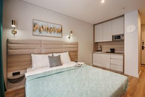 УДОБСТВА В АПАРТАМЕНТАХ: кондиционер, wi-fi (100мб/сек), цифровое ТВ (130 каналов), плазменный ТВ, СВЧ, чайник, вся необходимая посуда для приготовления и приёма пищи, качественные постельное белье и полотенца, стиральная машина, утюг, гладильная доска, фен и прочие бытовые мелочи (одноразовые тапочки и индивидуальный косметический набор)