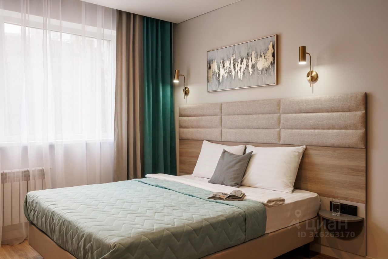 ОПИСАНИЕ: апартаменты с новым дизайнерским евро-ремонтом со всей необходимой мебелью. Размещение до 3-ёх человек. Спальные места: двуспальная кровать. При необходимости предоставляем раскладушку. Встроенная кухня, с/у в кафеле, душевая, импортная сантехника, стеклопакеты.