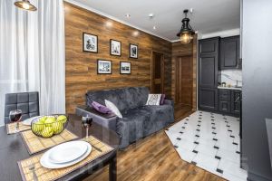 Кухня-гостиная просторная и светлая, с удобным раскладным диваном, идеальным для отдыха.