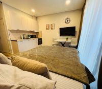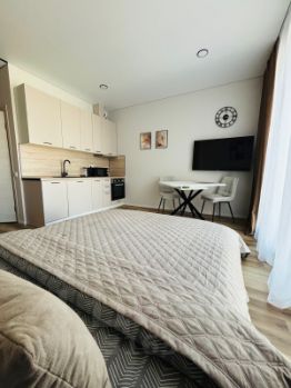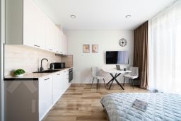 В студии имеется комфортабельная кровать с высоким ортопедическим матрасом (160х200).