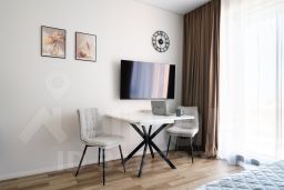 кондиционер, телевизор smart TV со всеми необходимыми приложениями и браузером, WiFi, фен, утюг, гладильная доска, сушилка для вещей, стиральная машина, большое количество мест для хранения вещей.